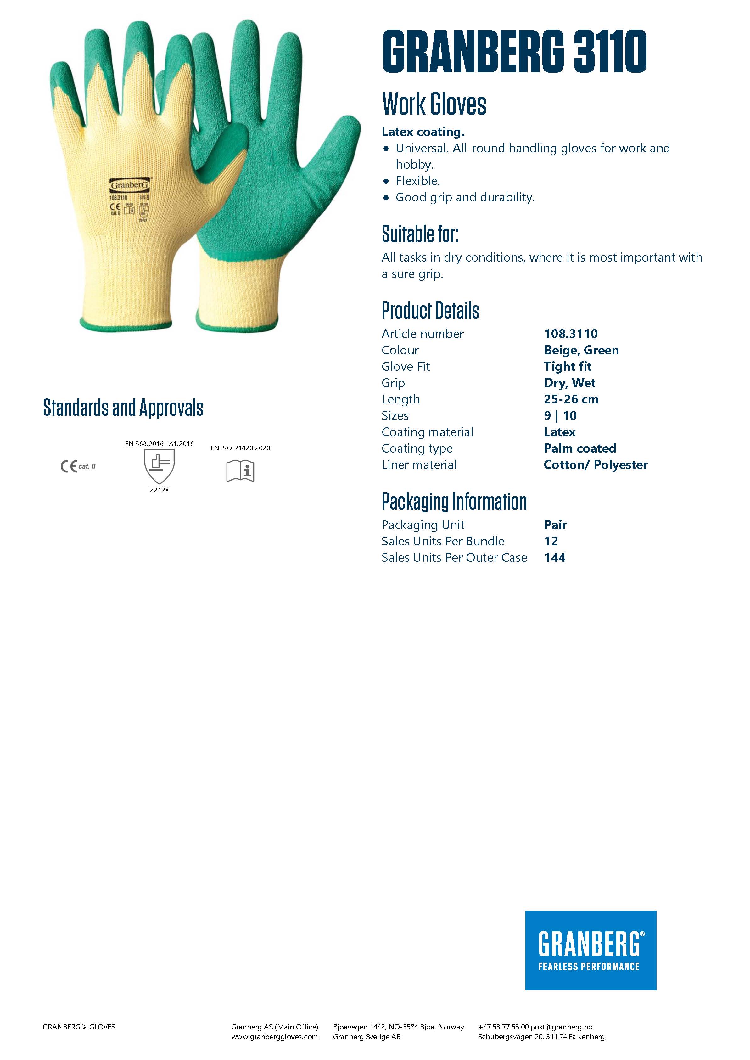 Bundnir arbeišshandskar viš latex Granberg AS 108.8095 Bundnir arbeiðshandskar við latex 79,00 DKK Vís vøru